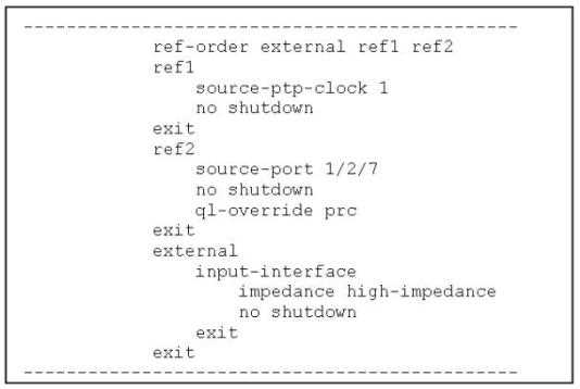 Click on the exhibit. Given the configuration shown and the following conditions: * The external reference is offline * Reference 1 receives Quality Level (QL) - EEC1 * Reference 2 receives QL - SSU-A Which quality level will the SAR router advertise to its Synchronous Ethernet (SyncE) peers?