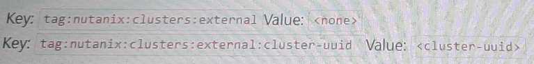 nutanix:clusters:external:cluster-uuid - Specifies the unique identifier for the cluster, enabling proper