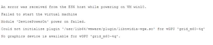 A Windows IO VM fails to power on With an NVIDIA vCPU profile in ESXi 7. The VM is configured with