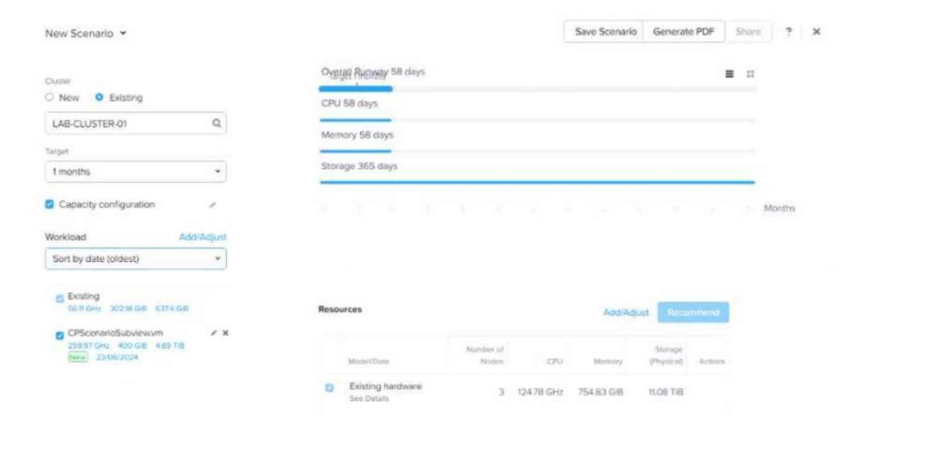 In Nutanix Capacity Planning, Overall Runway represents how long the cluster can support current