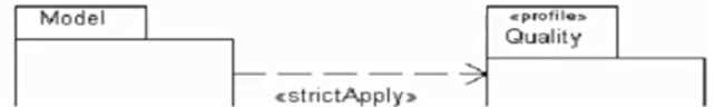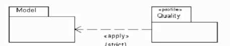 relationship between the model and the profile with the {strict} keyword applied. This means that