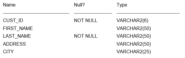 Examine the description of the CUSTOMERS table: You want to display details of all customers who reside in cities starting with the letter D followed by at least two characters. Which query can be used?