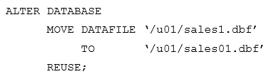 The tablespace containing SALES1.DBF must be altered OFFLINE before executing the command.