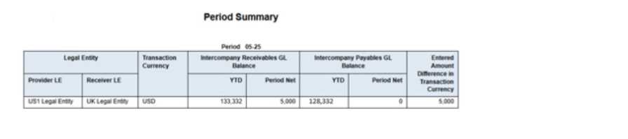 You are reviewing the Intercompany Reconciliation report for the current period and notice that there is a difference for the period as indicated. What could be reason for this difference?