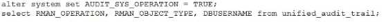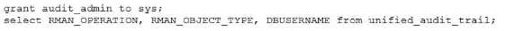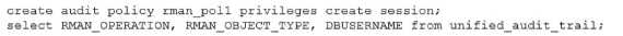 Using Unified Audit, you must determine who performed an pkan backup ot recovery operations on a database. You are connected as sysdba. Which statement(s) achieve this? A) B) C) D) E)