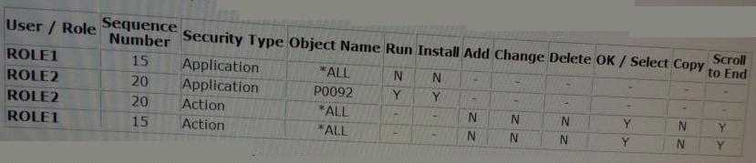 A JDE user has two roles (ROLE1 and ROLE2) assigned. The role sequence and security for the two