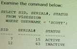 Explanation: B (not A, Not C): * You terminate a current session using the SQL statement ALTER SYSTEM KILL SESSION. The following statement terminates the session whose system identifier is 7 and serial number is 15: * Terminating an Active Session If a user session is processing a transaction (ACTIVE status) when you terminate the session, the transaction is rolled back and the user immediately receives the following message: ORA-00028: your session has been killed ALTER SYSTEM KILL SESSION '7,15'; E (not F): Terminating an Inactive Session If the session is not making a SQL call to Oracle Database (is INACTIVE) when it is terminated, the ORA-00028 message is not returned immediately. The message is not returned until the user subsequently attempts to use the terminated session. When an inactive session has been terminated, the STATUS of the session in the V$SESSION view is KILLED. The row for the terminated session is removed from V$SESSION after the user attempts to use the session again and receives the ORA-00028 message. Reference: Oracle Database Administrator's Guide, Terminating Sessions URL: http://docs.oracle.com/cd/B28359_01/server.111/b28310/manproc008.htm#ADMIN11192