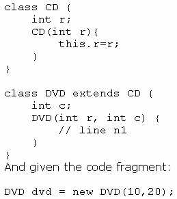 Given: Which code fragment should you use at line n1 to instantiate the dvd object successfully?