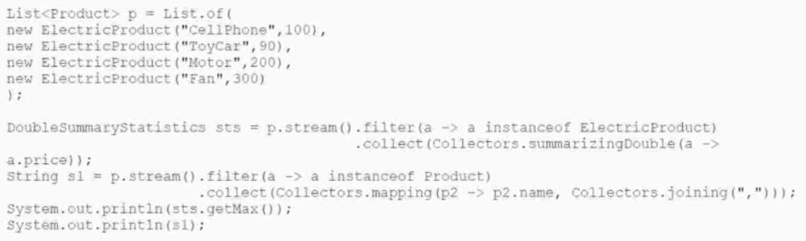 of the prices of all ElectricProduct objects that have a price greater than 10. The result of the collect