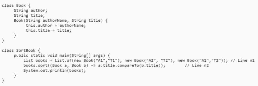 The code fragment is trying to sort a list of books using the Collections.sort() method. The correct