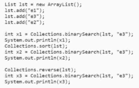 The code fragment uses the Collections.binarySearch method to search for the string “e3” in the list.