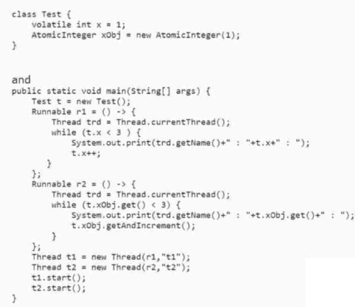 value of the Atomic Integer object, x, which is initially set to 1. The threads will then increment the