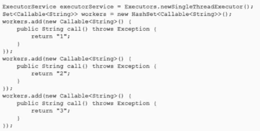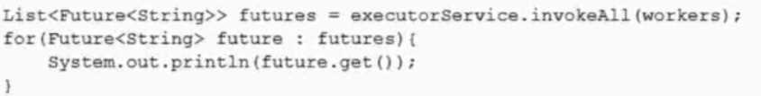 The code fragment in Option C invokes all callable objects in the workers set by using the