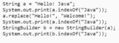 index of “Java” in “a” after replacing “Hello!” with “Welcome!” is 10, and the index of “Java” in “b” is