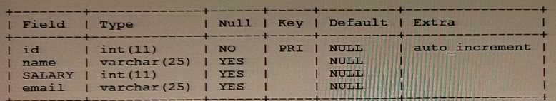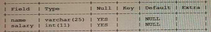 Examine the structure of the emp table: Examine the structure of the emp_vu1 view based on the emp table: Now, examine this statement: mysq1> INSERT INTO emp_vul VALUES ('Alice',20000) ; What is true about executing the statement?