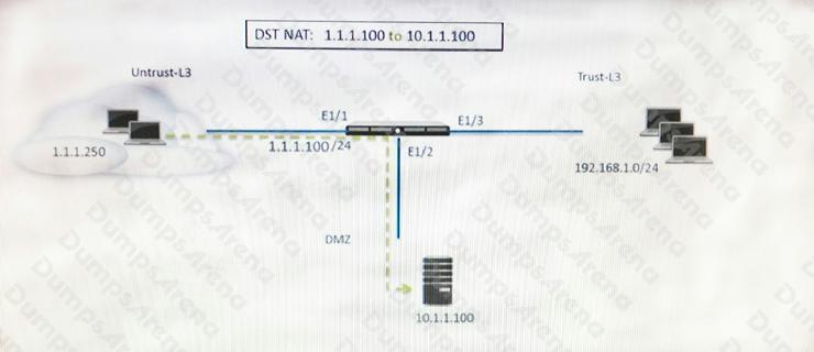 443. A Security policies rules allowing access from the Trust zone to the DMZ zone needs to be configured to allow web-