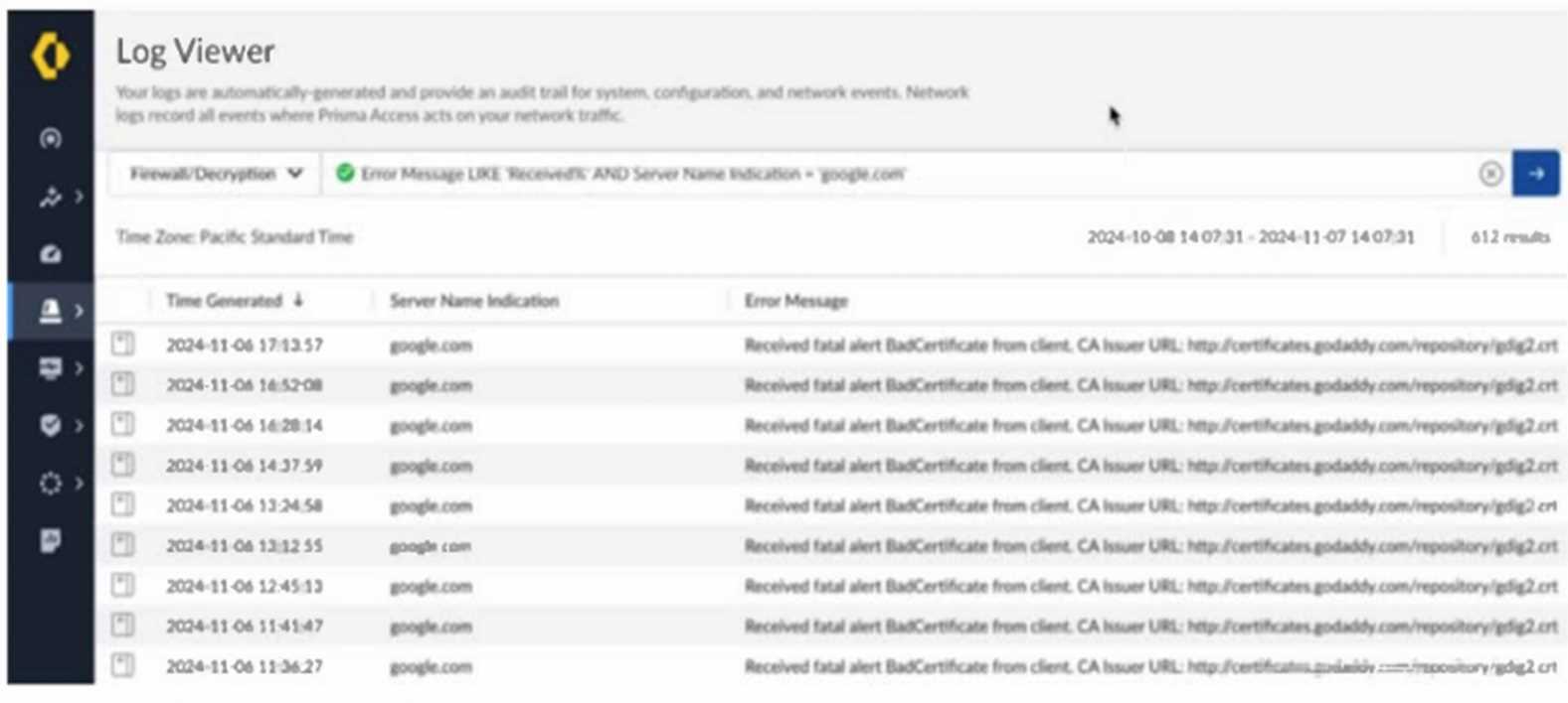 The error messages indicate that Prisma Access is encountering certificate issues while attempting to