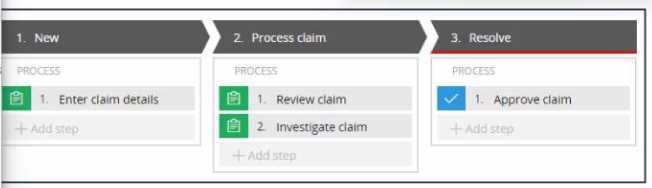 Review Claim Step Configuration: The "Review claim" step is configured to set the case status to