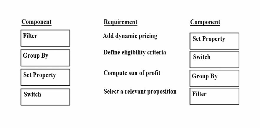 DRAG DROP You are a Strategy Designer on a Next-Best-Action project and are responsible for designing and implementing decision strategies.