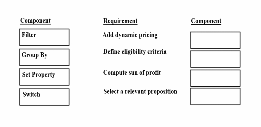 DRAG DROP You are a Strategy Designer on a Next-Best-Action project and are responsible for designing and implementing decision strategies.