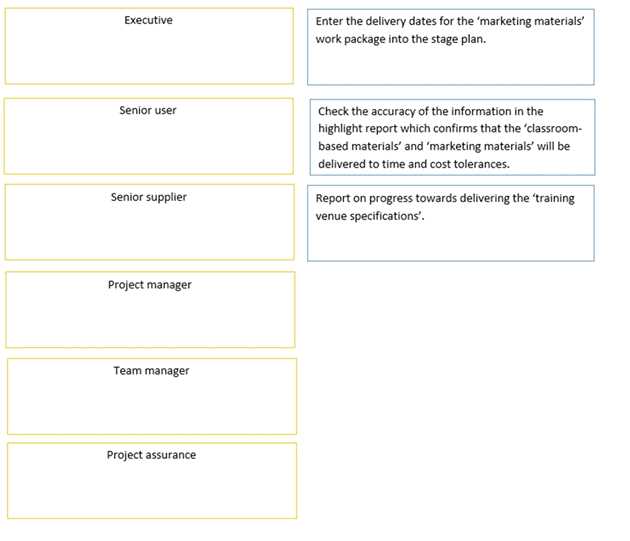 Here are three activities that take place during the ‘controlling a stage’ process. Which role
