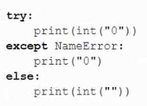 Which of the following snippets will execute without raising any unhandled exceptions? (Select answers) A) B) C) D)