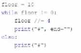 floor = 5 while floor > 0: print(“+”) floor = floor - 1