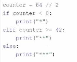 if counter < 0: print(““) elif counter >= 42: print(”“) else: print(””)