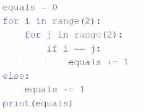 operator (==). If the values are equal, the code prints 4 to the screen. If the values are not equal, the