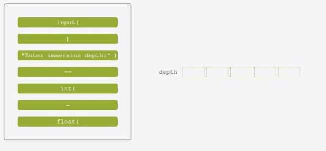 Insert the code boxes in the correct positions in order to build a line of code which asks the user for a