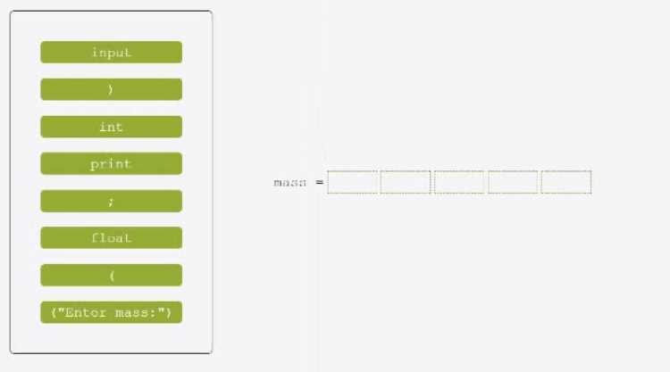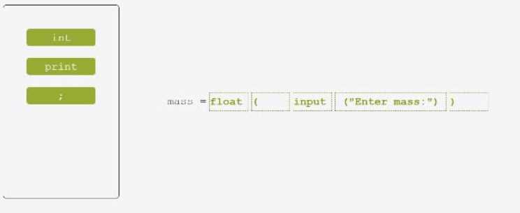 One possible way to insert the code boxes in the correct positions in order to build a line of code