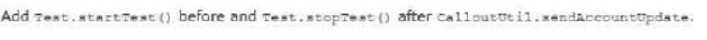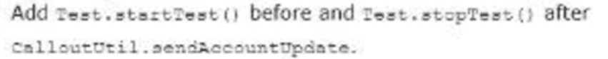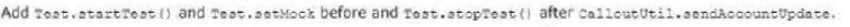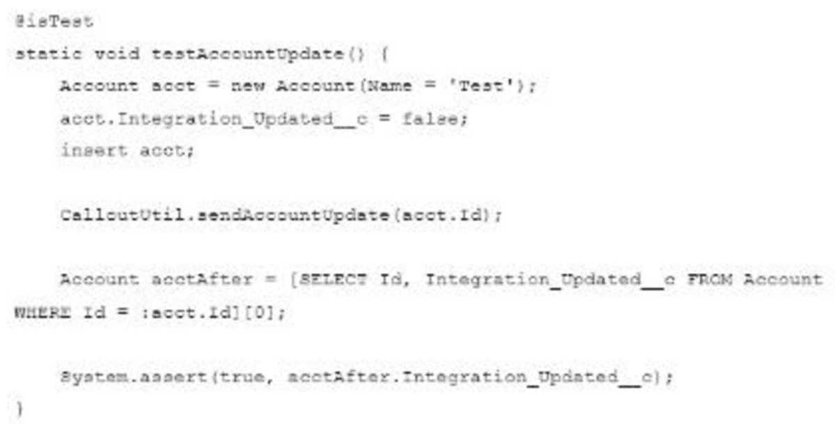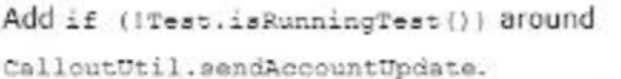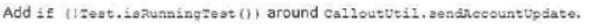The test method calls a web service that updates an external system with Account