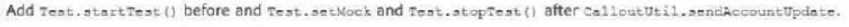 method invocation, and finally Test.stopTest(). This ensures the mock callout is used.
