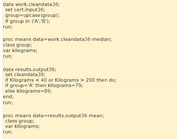 cert\programs. Write a SAS program that will clean the data incert.input36as follows: