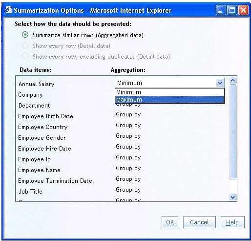 Refer to Exhibit: A SAS Web Report Studio user is changing the summarization option for Annual Salary and the only aggregations allowed are Minimum and Maximum. Why is the list limited to only these two choices?