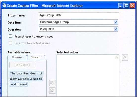 Refer to the exhibit. A user is creating a Custom Filter in SAS Web Report Studio. The Get Values button is grayed out and there is a message saying that the data item does not allow available values to be displayed. Which change would need to be made to the information map to allow the user to use the Get Values button?