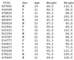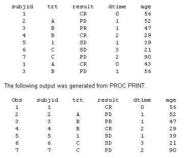 Given the following data set: Which program was used to prepare the data for this PROC PRINT output?