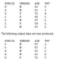 proc sort data=one out=two; where=(age>50); by subjid; run;