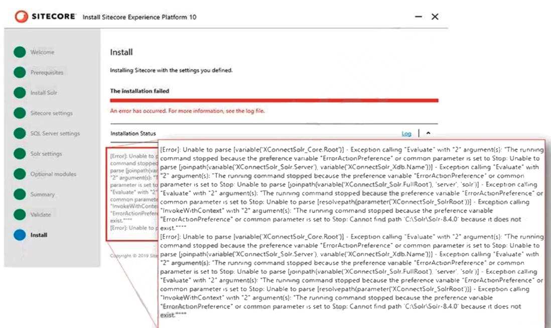 While using the Sitecore Install Assistant (SIA), you encounter the error below: Based on the information provided in the image, what is the most likely reason for this install error?