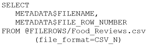 FILERONS is the file format location. FILE_ROW_NUMBER is a stage.