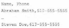<OCR>Name, Phone Abraham Smith, 510-555-5555 … Steven Doe, 613-555-5555 </OCR>