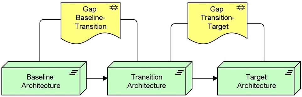 It represents the deliverables necessary to transform the architecture from Baseline to Target