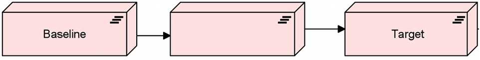 Consider the following diagram, which represents a migration from a Baseline to a Target Architecture: Which of the following answers best interprets the unlabeled symbol in the middle of the diagram?