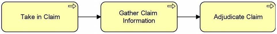 Take in Claim passes information to Gather Claim Information, and Gather Claim Information passes information to Adjudicate Claim