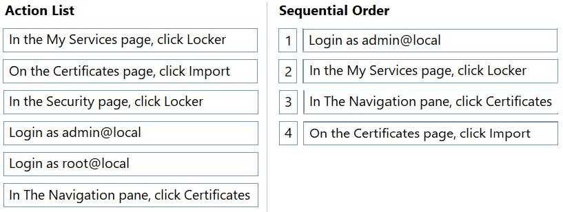 Drag and drop the four correct actions the administrator must complete from the action list on the