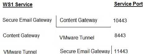Match the Workspace ONE Service on the left to its Service Port on the right.