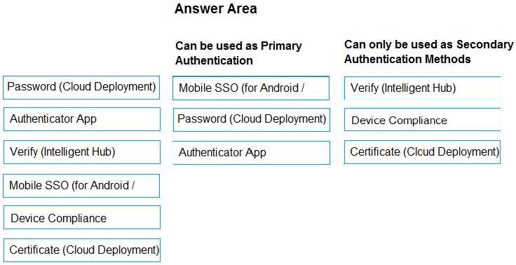 In Workspace ONE Access, some authentication methods can best be used as Primary