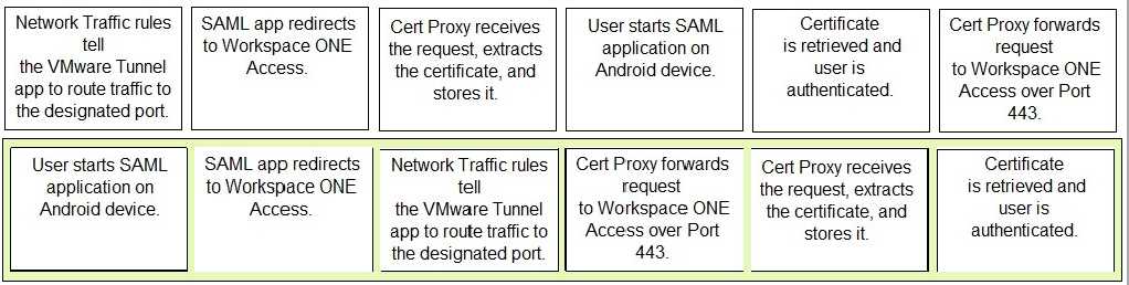 Order the steps for the authentication flow for Android SSO. Order responses from left to right.