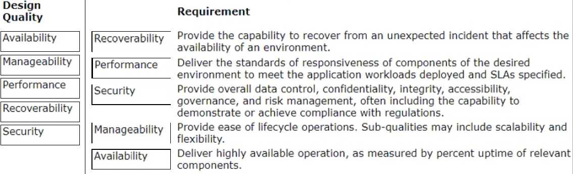 Drag and drop each Design Quality from the left into the box corresponding to the correct