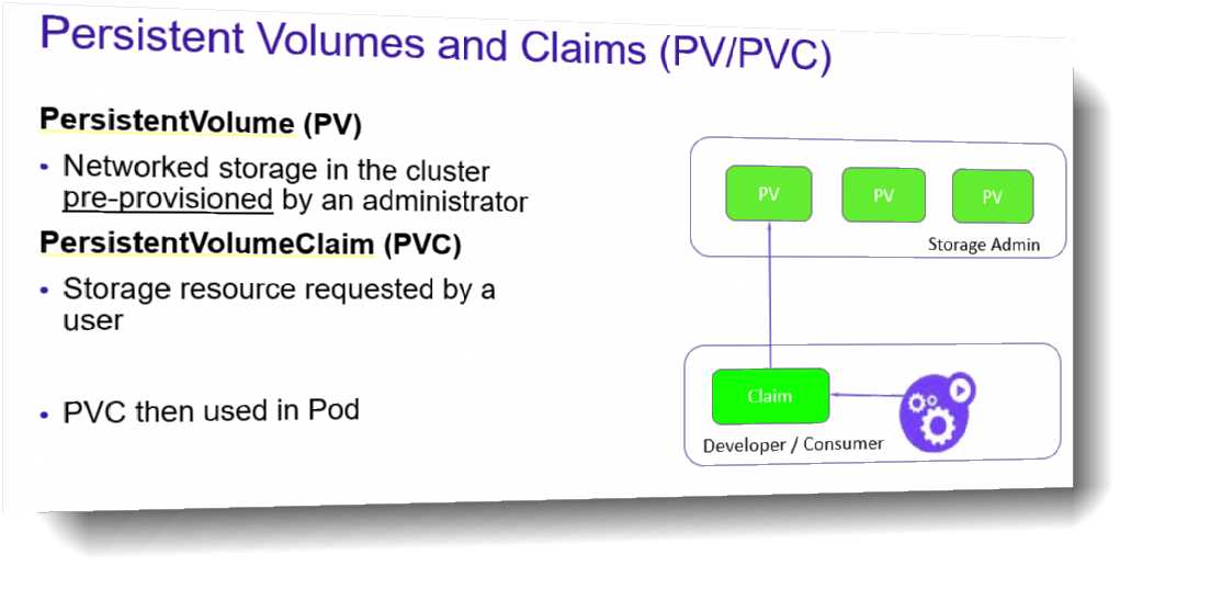 DevOps engineers create persistent volume claims to request persistent storage resources. The